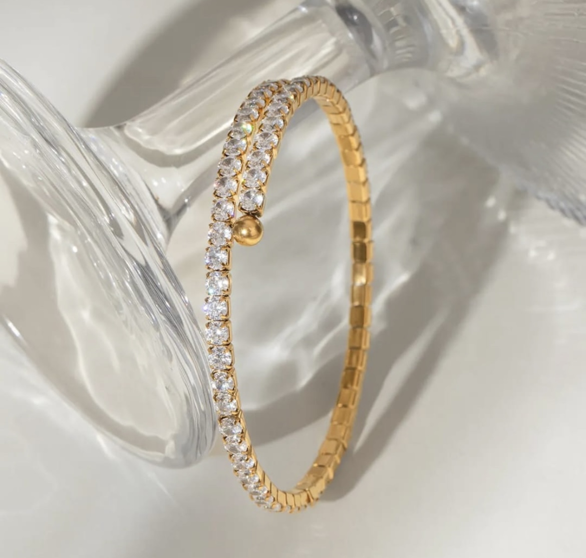 The Isa Tennis Bracelet features a continuous line of fine gold-plated brilliance, designed to catch the light with every movement. Refined yet effortless, it brings understated luxury to your everyday — whether worn alone or layered.